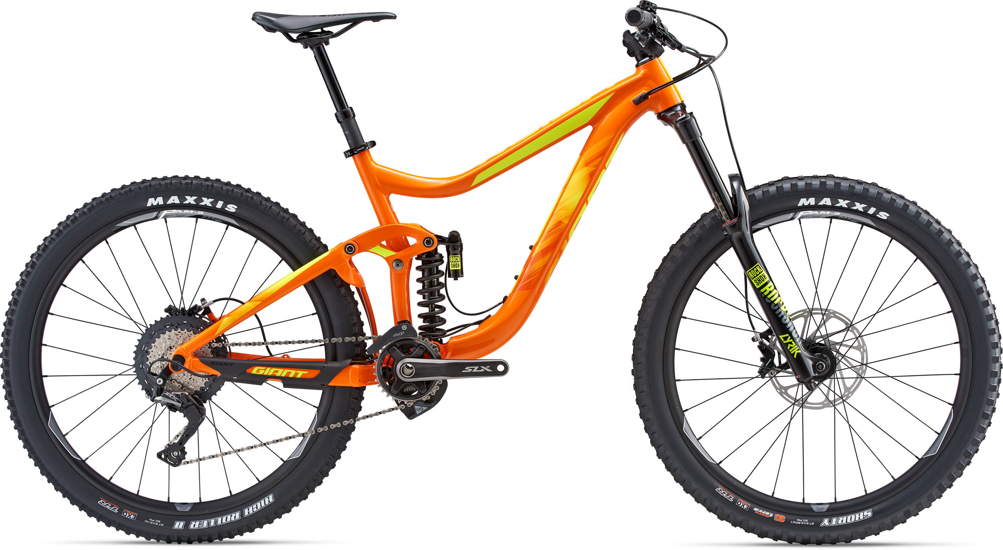 Front: Maxxis Shorty, 27.5x2.5, Tubeless, EXO, 60 TPI Rear: Maxxis High Roller II, 27.5x2.4, Tubeless, EXO, 60 TPI |